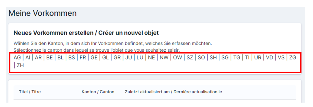 Um eigene Vorkommen zu erstellen und gewisse Funktionen des Tools wie Favoriten und Benachrichtigungen zu nutzen, brauchen Sie ein Konto.