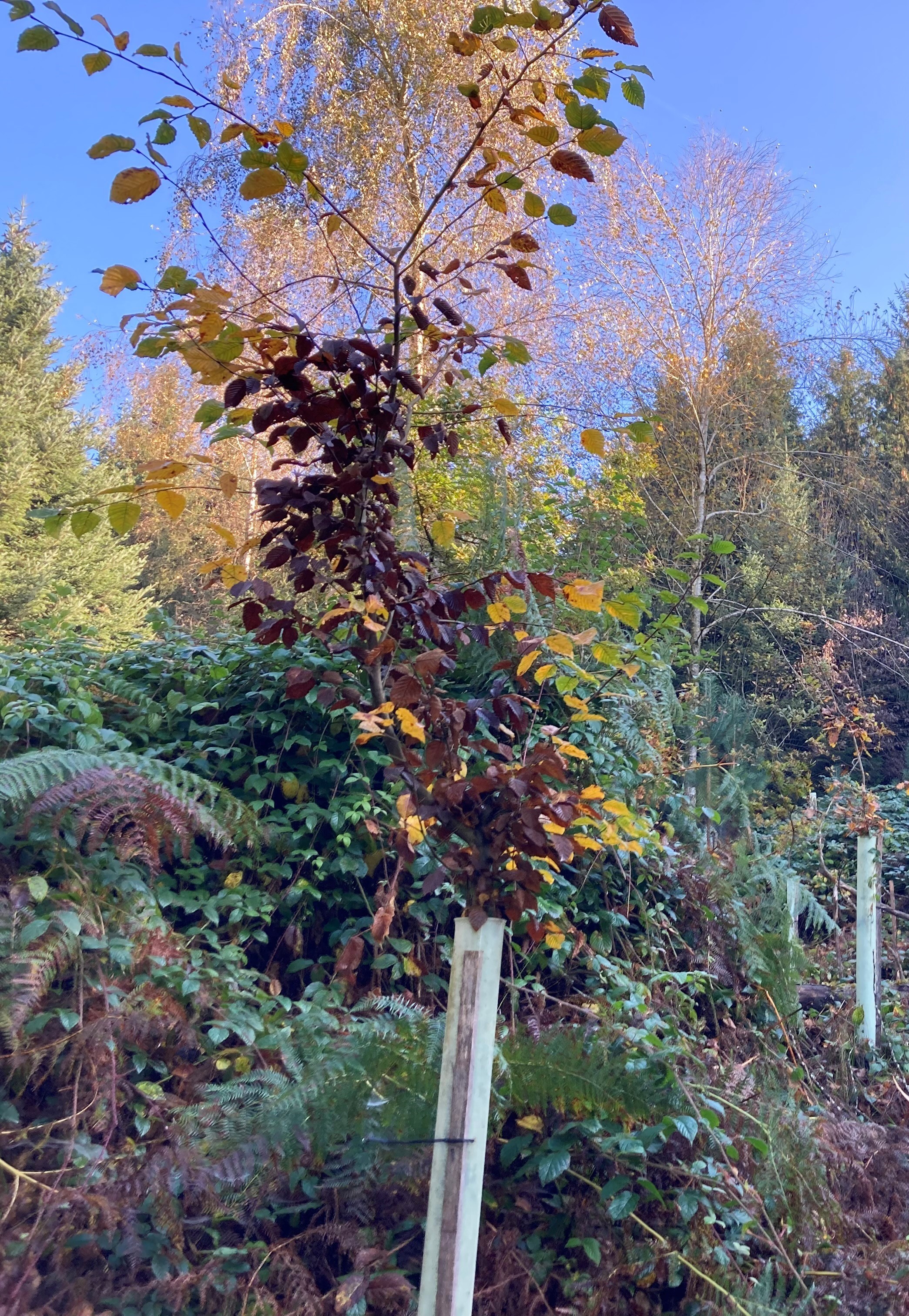 Am unteren Ende der Fläche, wo es ein Hangfuss ist und sich vermutlich mehr kalte Luft ansammelt als am oberen Ende der Fläche, gab es Spuren von Spätfrost. Gleichzeitig erhält der untere Teil der Fläche mehr Sonne als der obere Teil der Fläche, deshalb war das Wachstum und die Vitalität am unteren Ende der Fläche besser.
